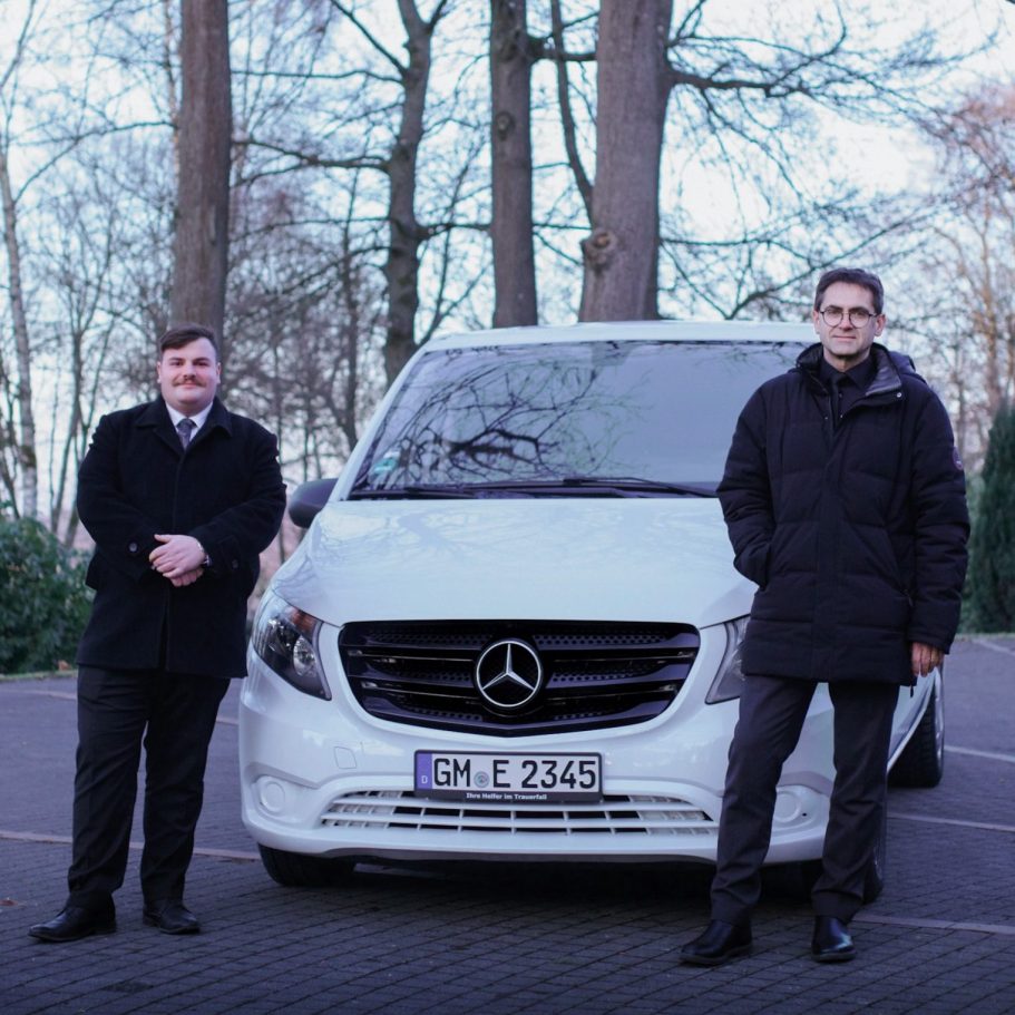 Mit unserem Mercedes-Benz Vito gewährleisten wir eine zuverlässige und respektvolle Begleitung, er vereint Zurückhaltung, Komfort und Würde.